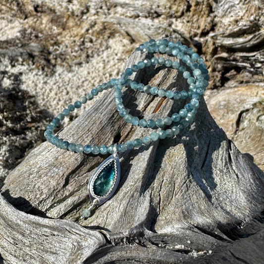 Aquamarine Teardrop Beaded Gemstone Necklace