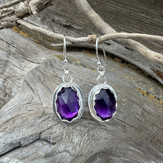 Amethyst Rose Cut Silver Earrings