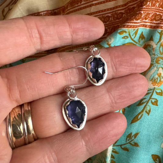 Iolite Rose Cut Silver Earrings