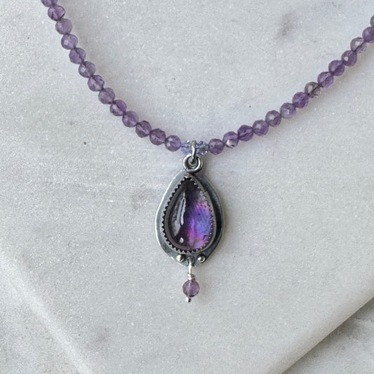 Amethyst Teardrop Gemstone Beaded Necklace