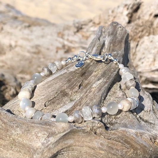 White Rainbow & Grey Moonstone & Pearl Bracelet