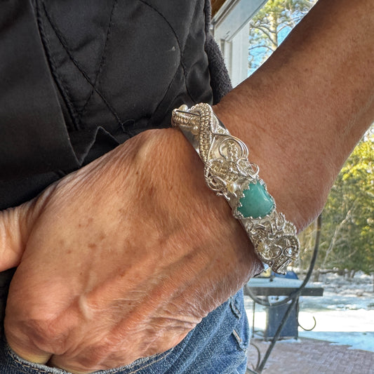 Amazonite Woven Silver Heart Overlay Cuff Bracelet
