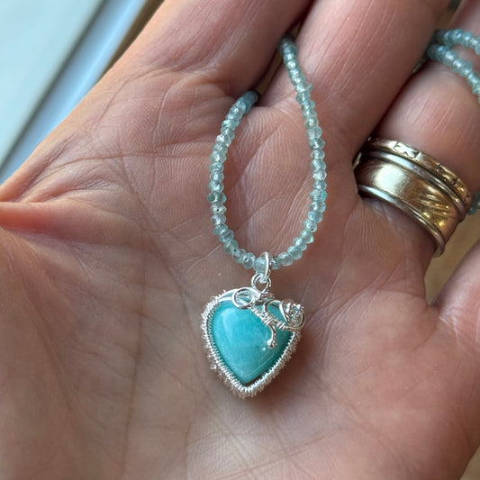 Amazonite Heart Silver Woven Necklace