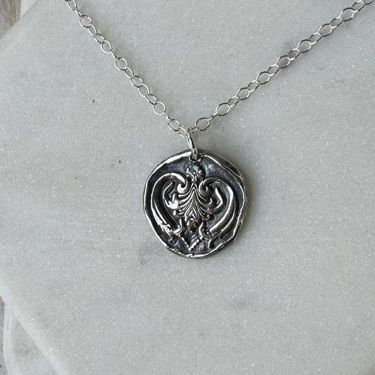 Antique Heart Silver Wax Seal Necklace