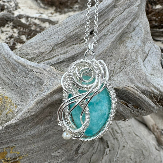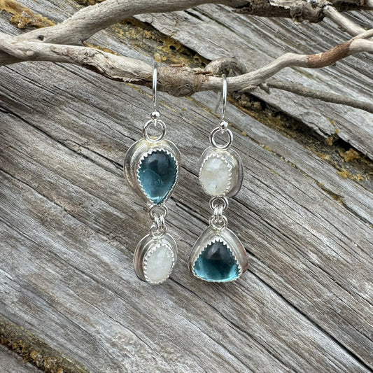 Teal Fluorite & Moonstone Asymetrical Earrings