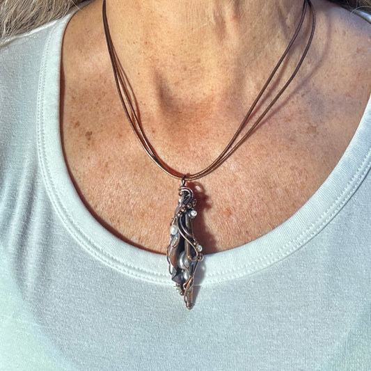 Pearl & Copper Pod Necklace with Leather Cording