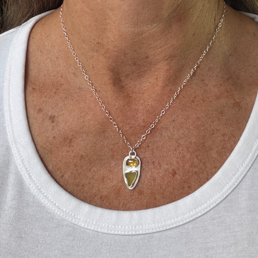 Yellow Sea Glass & Yellow Tourmaline Necklace
