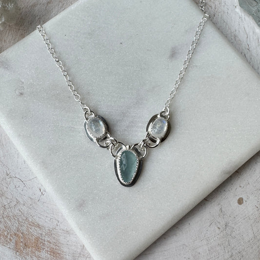 Aquamarine Teardrop Beaded Gemstone Necklace