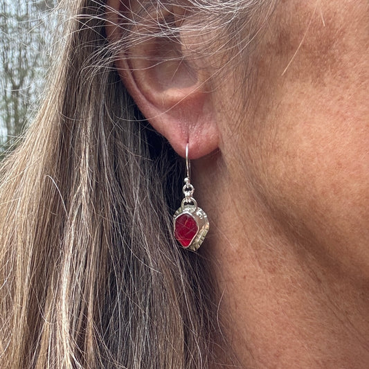 Red Sea Glass Bezel Set Earrings