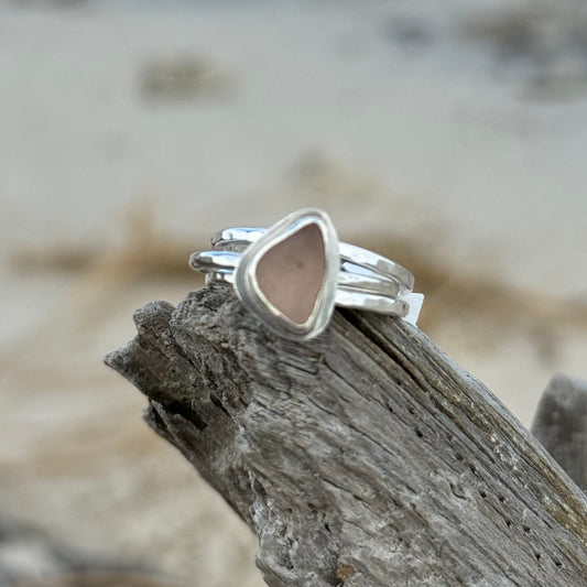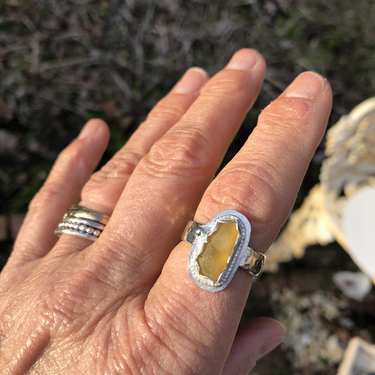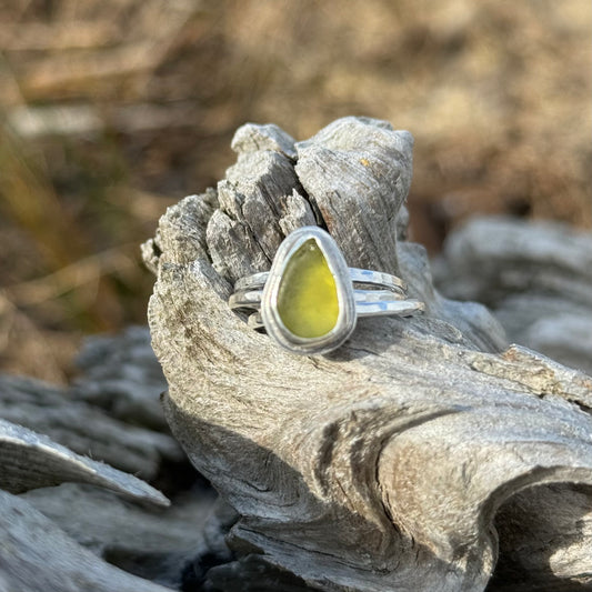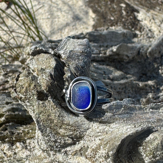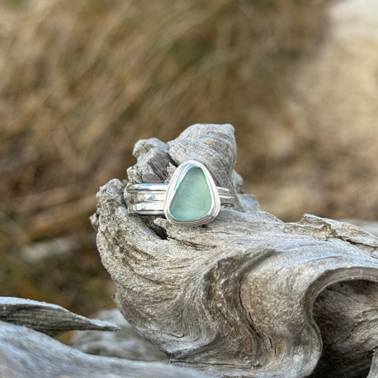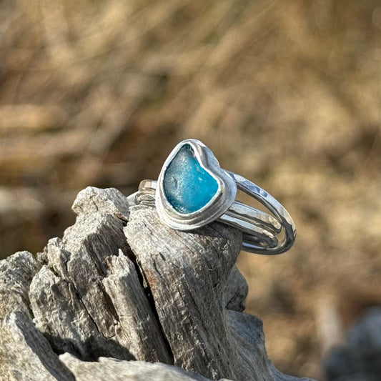 Teal Blue Sea Glass Stacking Ring- Size 7