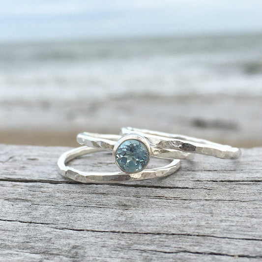 Aqua Blue Sea Glass Stacking Ring- Size 8.5