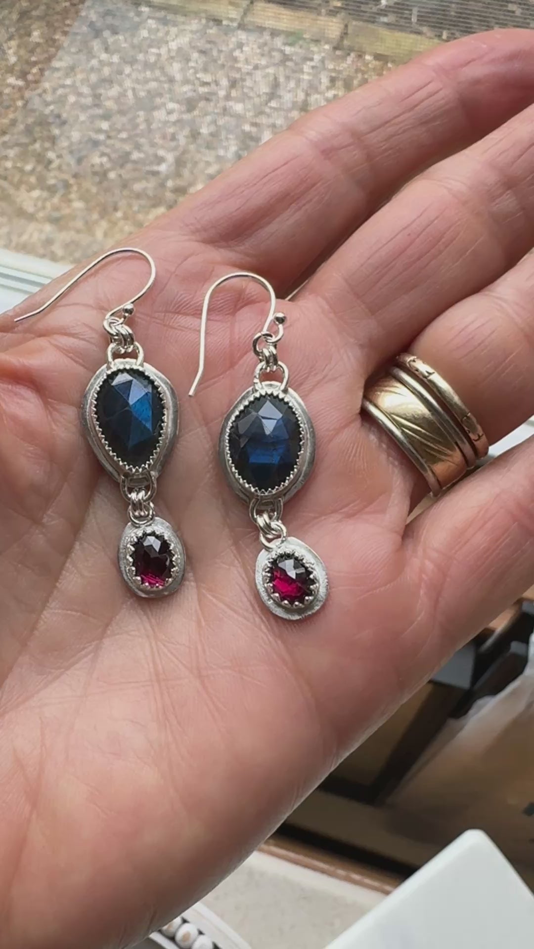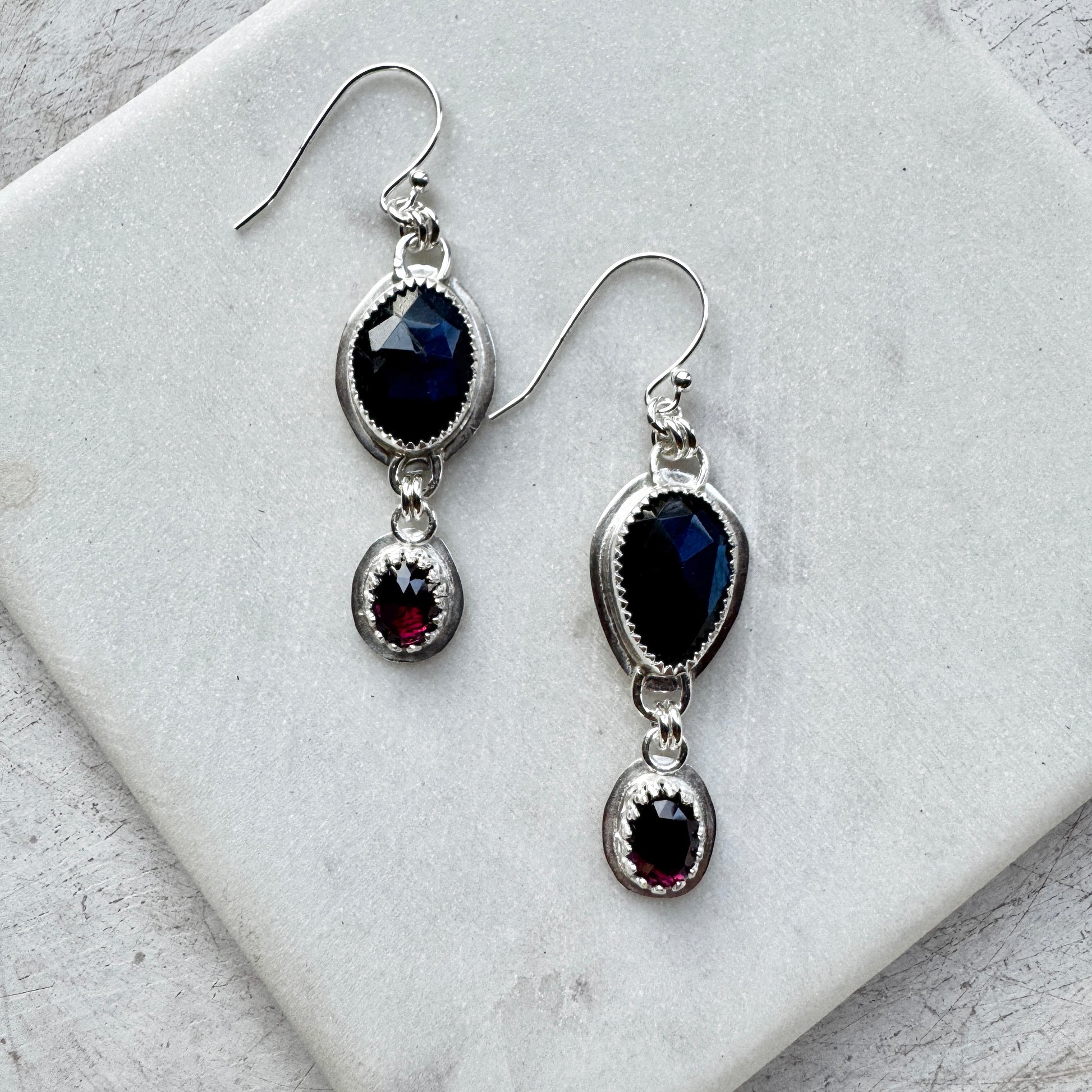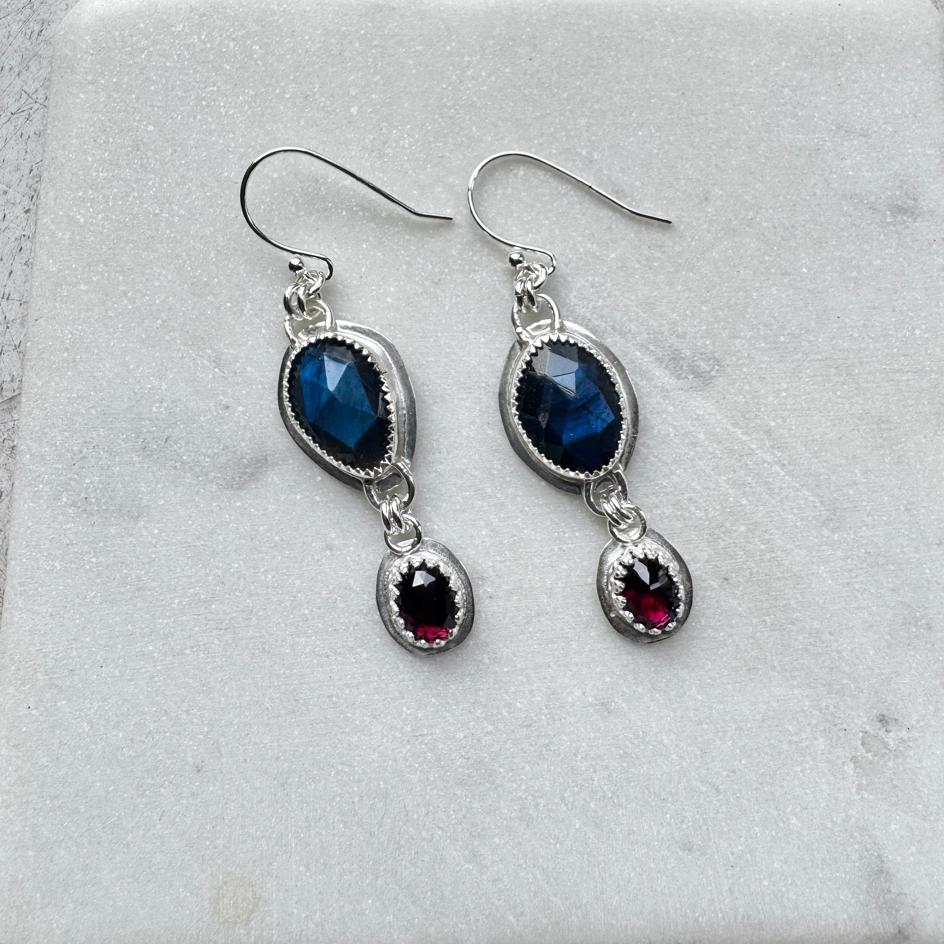 Blue Flash Labradorite & Garnet Earrings