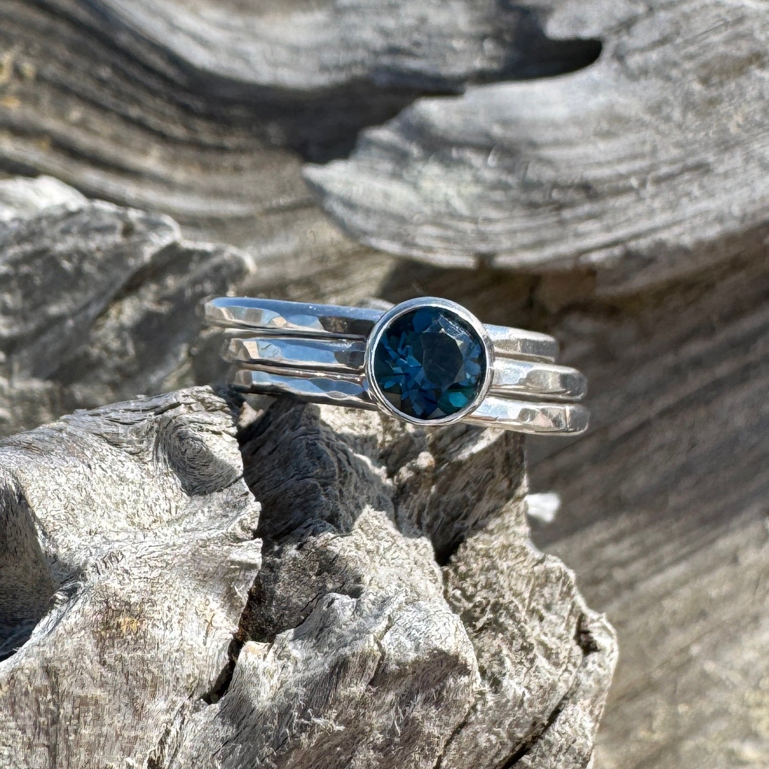 - Deep navy blue Kyanite gemstone with 2 sparkling sterling silver rings