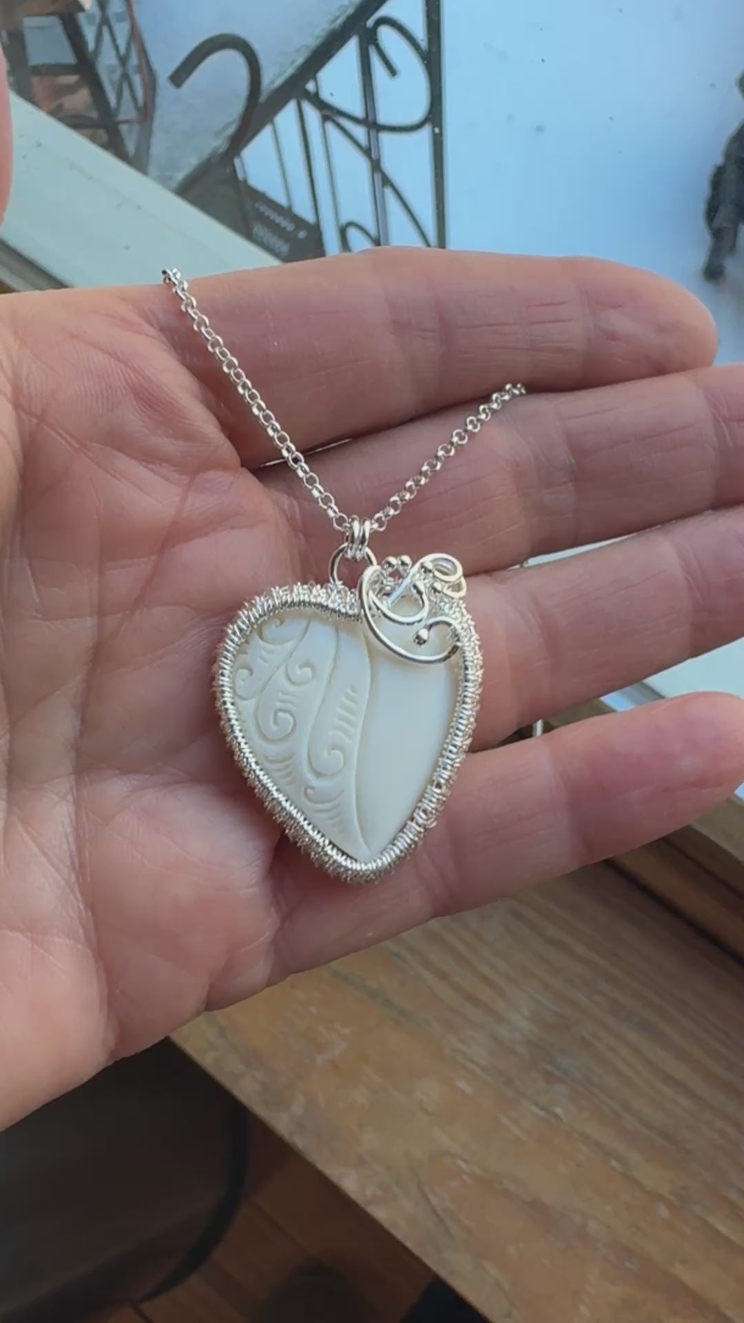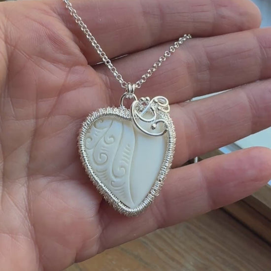 Carved Buffalo Bone Woven Silver Heart Necklace
