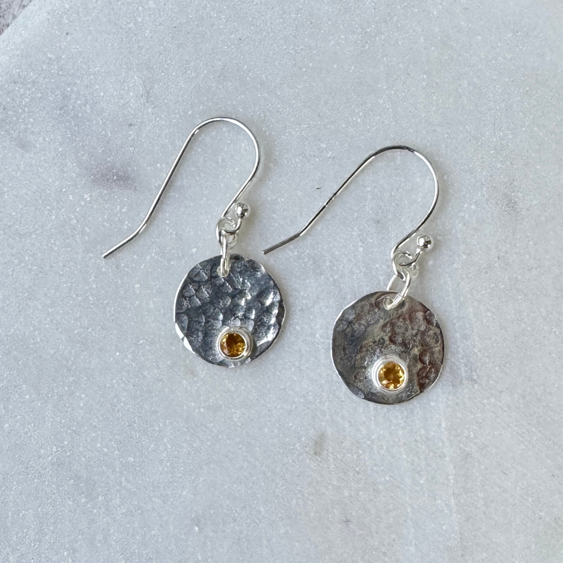 Citrine Small Silver Disk Earrings