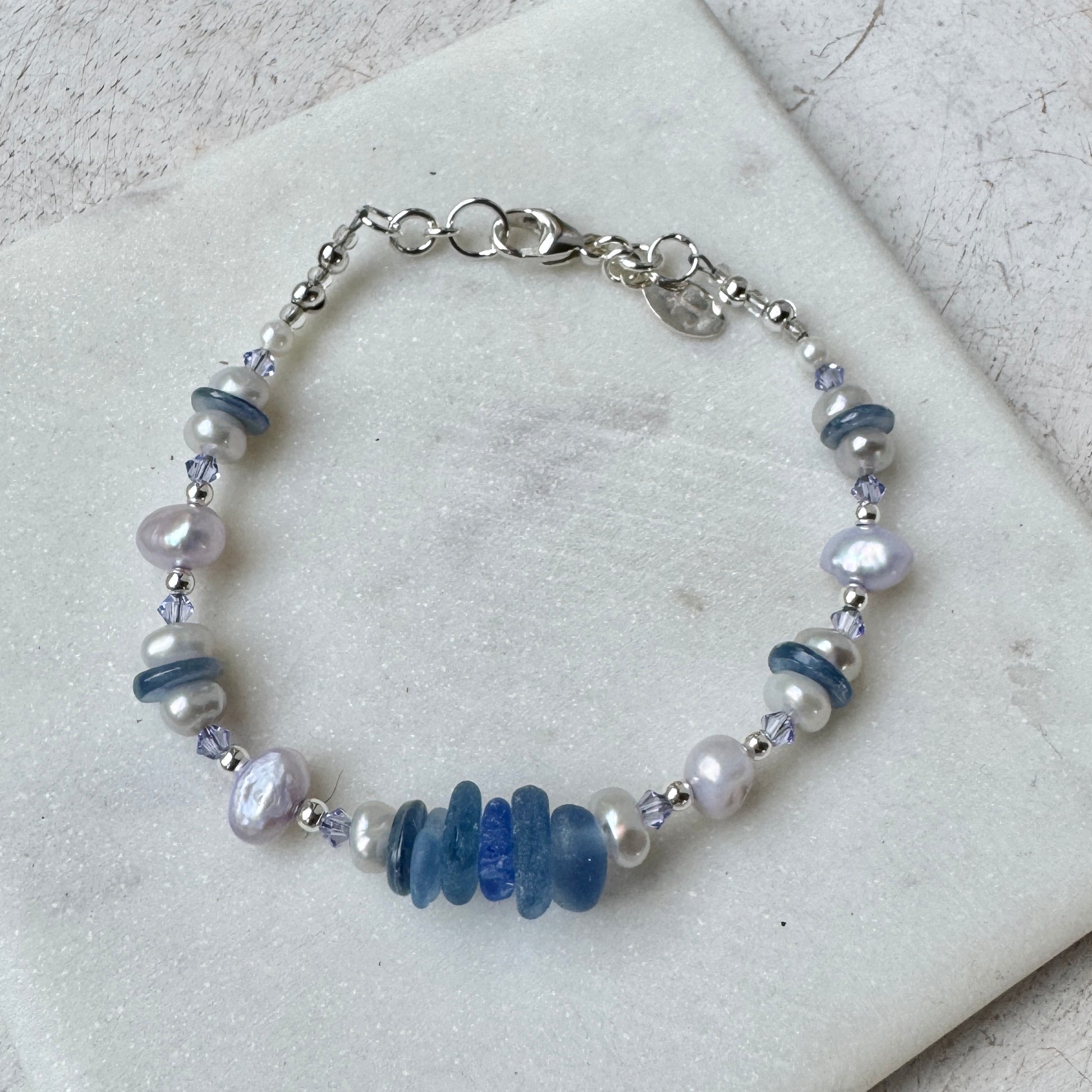 Cornflower Sea Glass & Lavender Freshwater Pearl Bracelet
