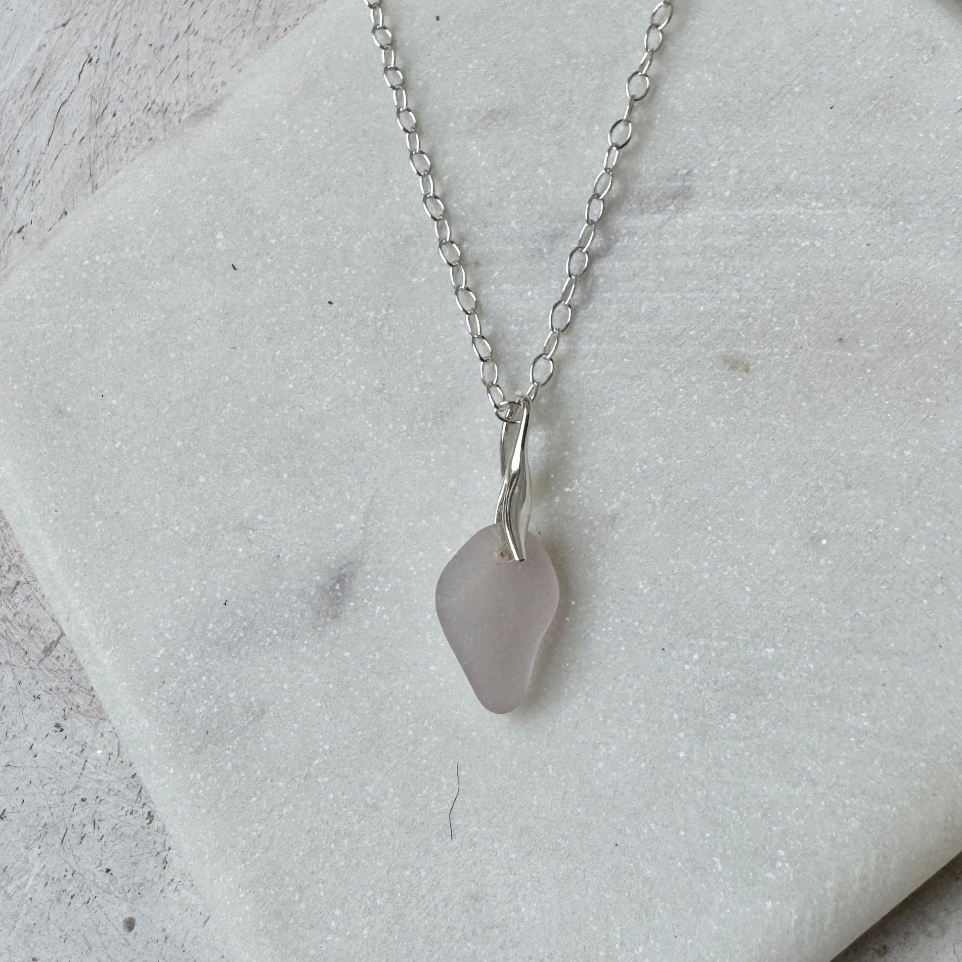 Natural Sea Glass Feather Necklace (3 Colors Available)