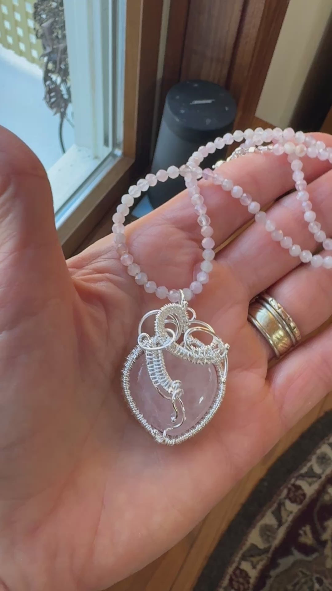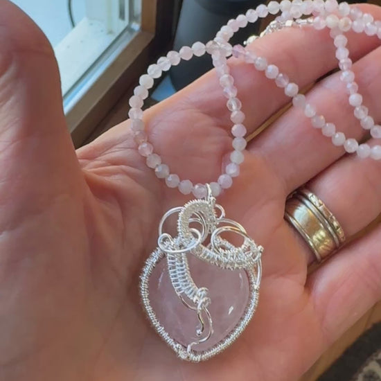 Rose Quartz Woven Silver Heart Necklace