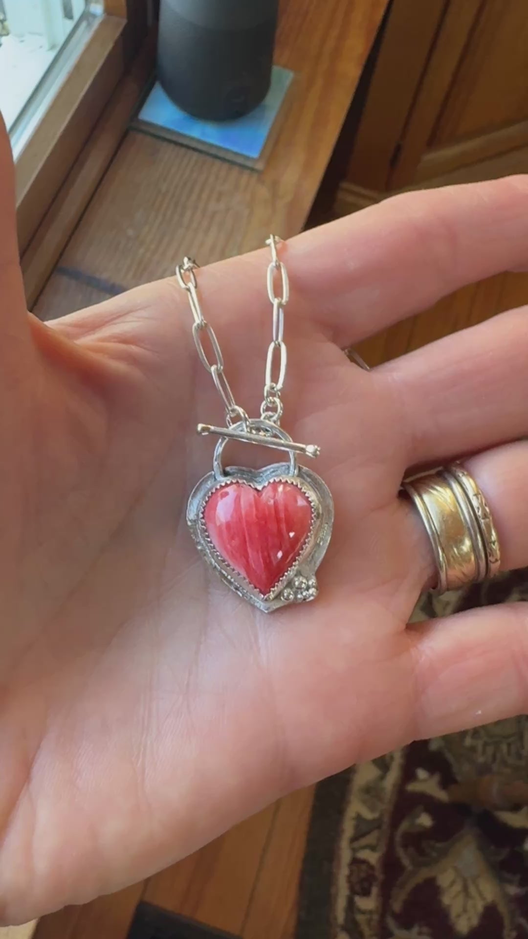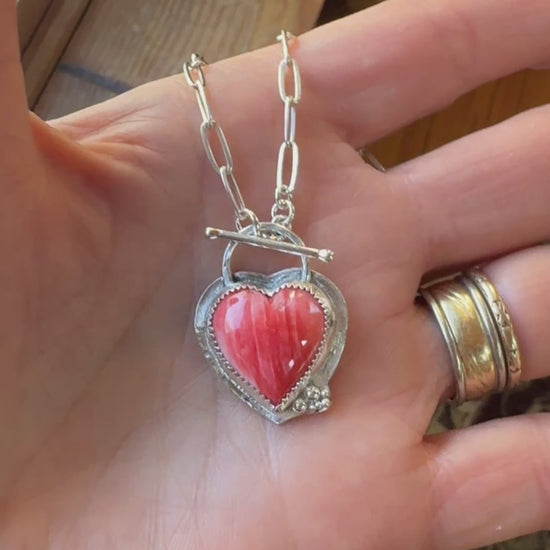Spiny Urchin Shell Heart Shaped Silver Necklace